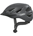 Abus cykelhjelmen har et klassisk design. Skallen er lavet af stødabsorberende EPS med 17 ventilationshuller, så luft kan komme både ud og ind. Fortil sidder der et praktisk fluenet for ventilationshullerne, og cykelhjelmen har en praktisk skygge, som kan tages af.