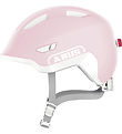 På indersiden er der vatterede beskyttelsespuder med mesh, som kan tages af og vaskes i hånden. Hjelmen tilpasses barnets hovedet ved at dreje på et hjul bagpå, og den lukkes under hagen med justerbare remme med et magnetisk glidespænde.