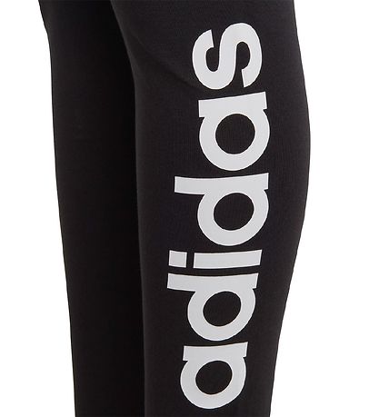 Flotte adidas Performance leggings i sort, med et småt logoprint på venstre lår og "adidas" i et stort print på venstre bukseben, begge dele printet i hvid.
