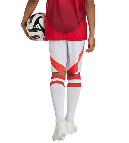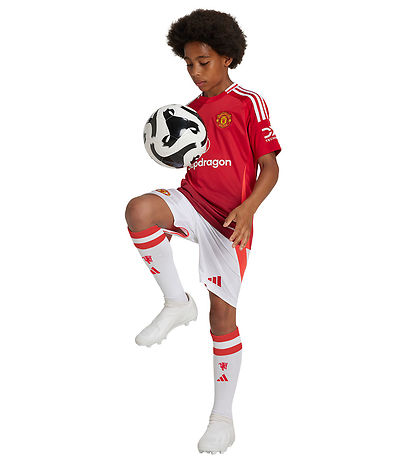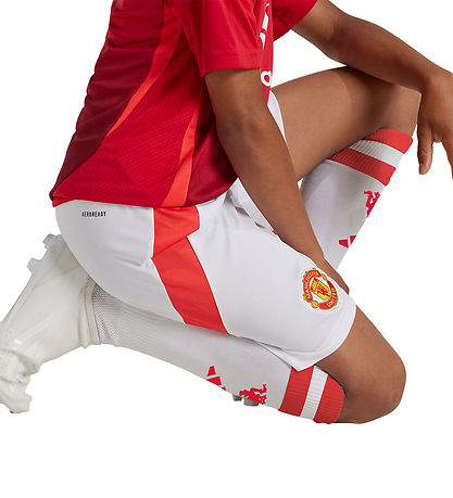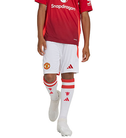 Smarte adidas Performance shorts i hvid med røde detaljer. Shortsene har et Manchetser United logo på højre lår samt et sort broderet adidas Performance logo på venstre lår.