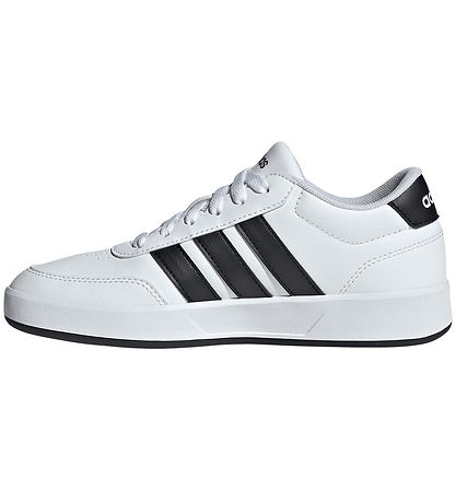 Stilfulde adidas Performance sko i hvid imiteret læder med sorte logostriber på siderne af skoen, der giver et klassisk udtryk. Ved hælen er der en sort del i toppen, med "adidas" printet i hvid.