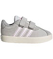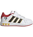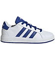 Flotte adidas Performance sko i hvid med de ikoniske tre blå striber på siden. Sneakersene har det klassiske "adidas" logo på pløsen samt på den hvide ydersål.