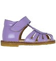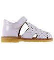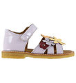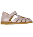 Flotte Angulus sandaler i skinnende rosa skind med et hjerte over foden, med glimmer i kanterne i rosa.
