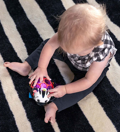 Aktivitetslegetøjet er perfekt til mavetid og siddende leg eller opdagelse på farten. Den er med til at opbygge finmotorikken og en forårsage-og-virkning læring, når den rystes, rulles eller gribes.