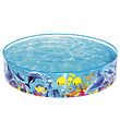 Bestway legebassinet er perfekt, når det er varmt udenfor. I stedet for at blive fyldt med vand til badning, har den en bund, som fyldes med vand, så den er blød og kølig at sidde på i varmen. Den er rund og har en oppustelig ring som sidevæg, der pustes op med en ventil. Derudover har den en kant, der er lavet med en legeindsats, hvor der er huller i forskellige former, som passer til de fem medfølgende skumklodser.