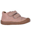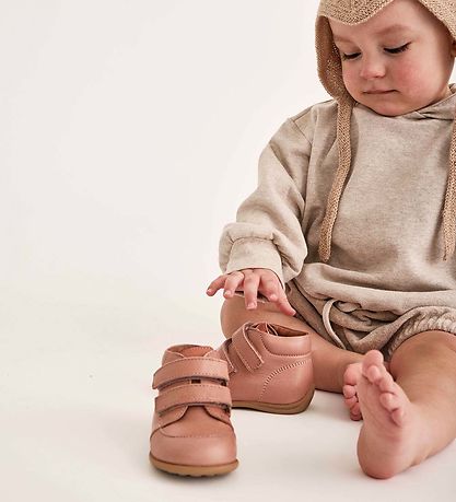 Bisgaard begynderskoene lukkes over vristen med velcrobånd og skoene har en fast hælkappe. Skoens inderside er af et lækkert læder, og indersålen er blød og udtagelig.