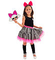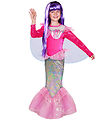 Flot Ciao Srl. Barbie udklædning i form af en heksekjole med pink glimmer samt et skørt i sort med pink spindelvæv og edderkopper. Der medfølger et pandebånd med en heksehat i sort og pink med et Barbie logo. Der er også en smuk kappe af mesh med en krave.