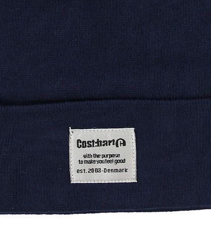 Lækker Cost:Bart strikhue i ensfarvet navy med et cremefarvet mærke fortil.
