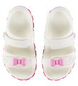 Fine Crocs sandaler i hvid med små, skinnende stjerner, og på ydersiderne er der et lille logo i sort og hvid.