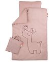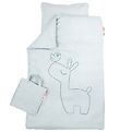 Sengetøjet består af et dynebetræk og et hovedpudebetræk der lukkes med skjulte lynlåse. Der medfølger også en praktisk bærepose i samme design.