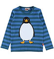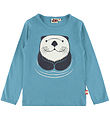 Sød DYR bluse i navy med et stort print på fronten af en haj i hvid, grå og rød.