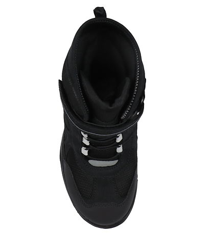 Seje Ecco vinterstøvler i sort ruskind og tekstil og med refleksdetaljer.