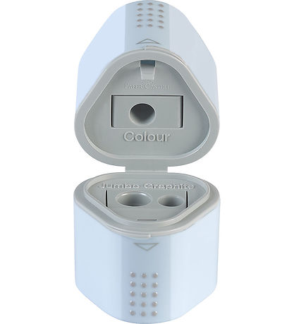 Faber-Castell blyantspidseren gør det nemt og praktisk at spidse blyanter, farveblyanter og jumbo blyanter. Blyantspidseren åbnes midt på, hvilket afslører tre huller i forskellige størrelser. Når blyantspidseren skal tømmes, tages de sølv dele af og tømmes let.
