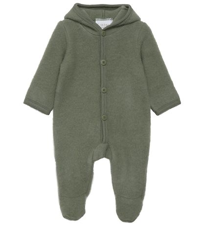Fed Fixoni køredragt i grønt, filtet uld med to søde ører på hætten.