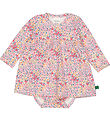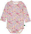Freds World bodyen har lange ærmer og kan åbnes med trykknapper både på venstre skulder og mellem benene. Bodyen har smalle ribkanter omkring alle åbninger, så den sidder til på en behagelig måde.