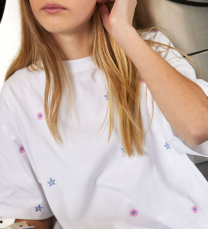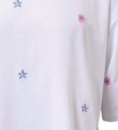 Flot Hound t-shirt i hvid med broderede blomster i rosa og lyseblå.