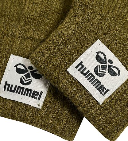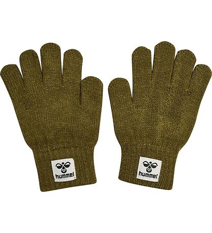 Fine Hummel strikhandsker i en ensfarvet grøn med et hvidt patch med mærkets logo.