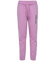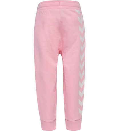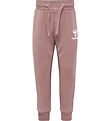 Lækre Hummel sweatpants i en blød rosa nuance med et logoprint i hvid på venstre lår. Sweatpantsene har en komfortabel pasform, hvilket gør dem ideelle til daglig brug.