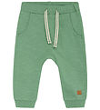Komfortable Hust and Claire sweatpants i meleret mørkegrøn med dekorative, stribede snører i taljen og et lille, diskret logomærke på det ene ben.