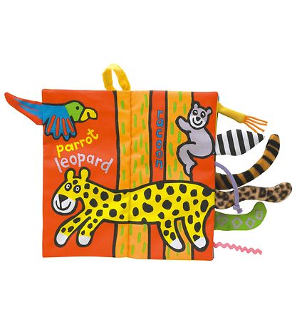 Skøn Jellycat stofbog med motiver af forskellige jungledyr.