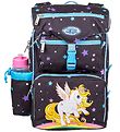 Skoletasken har en ergonomisk foamback-ryg og polstrede skulderremme og har i øvrigt en praktisk brystrem med klikspænde samt en elastisk rem med klikspænde til at spænde rundt om hofterne. Der er en hank i toppen, så tasken også kan bæres i hånden. Tasken har flere refleksdetaljer samt en forstærket bund, så indeholdet er beskyttet, og tasken kan stå selv.