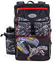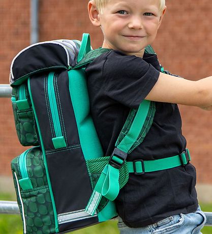 Smart Jeva skoletaske i grønne farver med et supersejt print over det hele. Fortil er der et print af en skræmmende, grøn drage.
