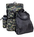 I taskens ene side sidder der en lomme, som kan strammes ind med en snøre og et spænde, og der medfølger en drikkedunk fra Plast Team med drikketud (500ml).