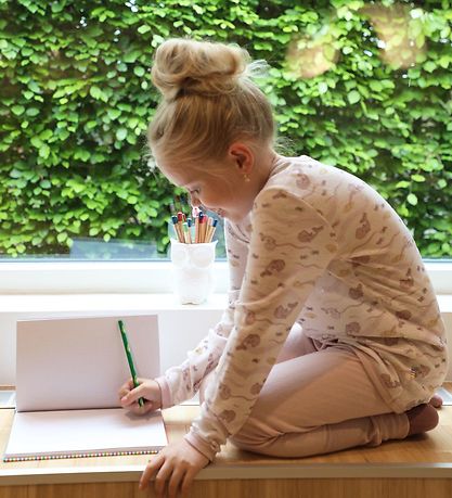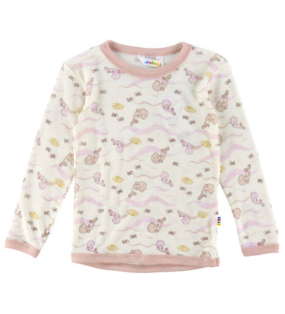 Fed Joha bluse i off white, med hvalprint i støvet rosa. Alle ribkanter er støvet rosa.