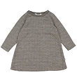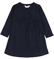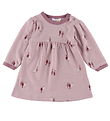 Flot Joha kjole i en dyb, lilla farve. Joha kjolen har en fin, ribbet struktur, der giver et elegant udtryk. Kjolen har lange ærmer med elastiske kanter og knaplukning ved skulderen.
