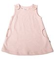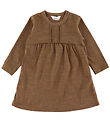Joha kjolen har lange ærmer med ribstruktur og en rund halsudskæring, der lukkes med trykknapper. Det bløde stof er dekoreret med delikate flæsedetaljer ved ærmekanterne, som tilføjer en fin finish til kjolens enkle design.