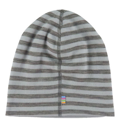 Smart Joha hue med vandrette striber i grå og lyseblå.