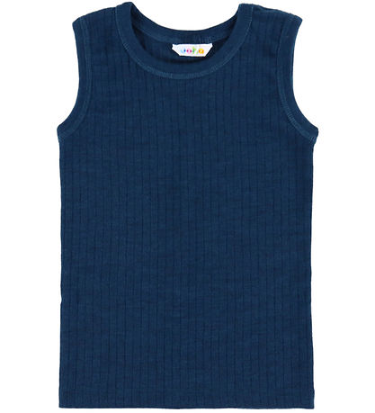 Flot Joha undertrøje i en dyb, blå farve. Undertrøjen har en fin ribstruktur, der tilføjer et enkelt, men stilrent udtryk. Designet er uden ærmer, hvilket giver en klassisk stil til Joha undertrøjen.