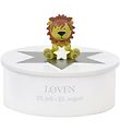 Kids by Friis skrinet har et låg, som kan tages af for at åbne ned til et stort rum. I bunden er der filt for at beskytte smykkerne.