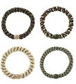 Kknekki hårelastikken består af mange smalle og små hårelastikker, der er strikket sammen med en masse tynde tråde. Hårelastikken i grå glimmer har en flot, afrundet plastiksamling på midten, der ikke river i hårene.