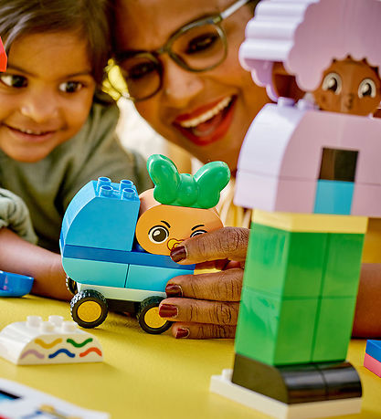 Hyggeligt LEGO® DUPLO sæt med i alt 71 klodser, som kan samles til byg selv-personer med store følelser.