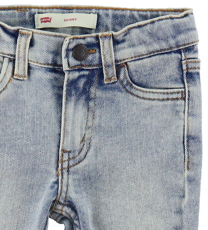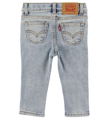 Levis jeansene har lange ben, og i livet har de en justerbar elastik med indvendige knapper. Jeansene lukkes med en hægte og en lynlås. Både fortil og bagpå er der praktiske lommer. Jeansene er i en strækbar kvalitet.