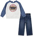 Flotte Levis jeggings i blå denim med en bred ribkant i livet i regbuemønster.