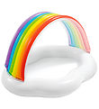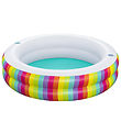 Fantastisk Liewood badebassin i råhvid, med dinosaure i blå, grønne, gule og rosa nuancer. Badebassinet har en cirkulær udformning og er bygget op af to oppustelige ringe.