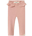 Charmerende Lil' Atelier leggings i en dyb rød farve, i en ribstruktur med et let hulmønster. Lil' Atelier leggingsene har en elastisk talje og fine flæsedetaljer ved anklerne.
