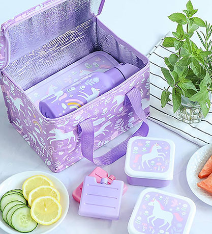 Fin A Little Lovely Company køletaske i lilla med enhjørningeprint.