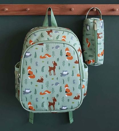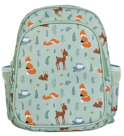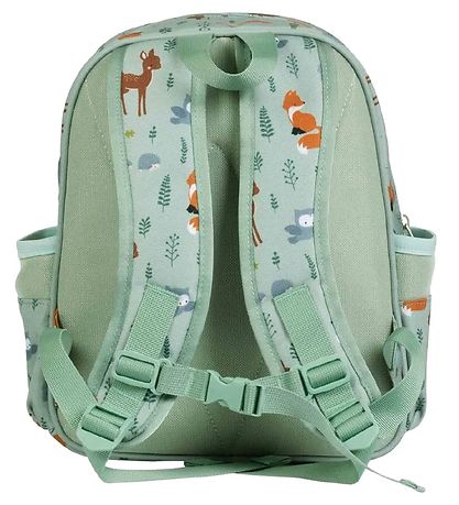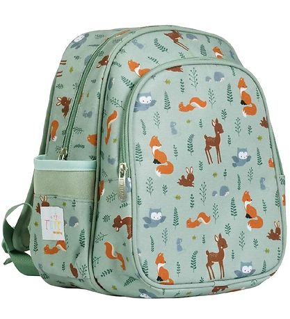 Smart A Little Lovely Company rygsæk i grøn, med print af dyr og planter fra skoven over det hele.