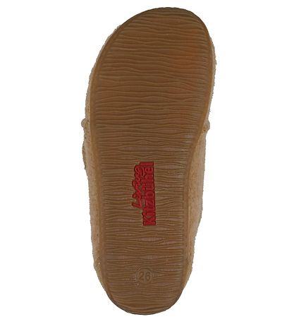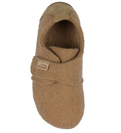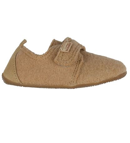 Fine Living Kitzbühel hjemmesko i lys brun uld med en hælkappe i ruskind.