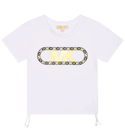 Michale Kors t-shirten har korte ærmer og en smal ribkant i halsåbningen. I bunden kan t-shirten bindes lidt op med snører, så der dannes flotte rynkedetaljer.