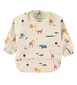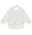 Mikk-Line hagesmækken har lange ærmer med smalle elastikkanter, og den lukkes i nakken med velcro. Forklædet har en praktisk lomme til opsamling af mad og drikke. Forklædet er lavet af praktisk PU med smalle kanter.