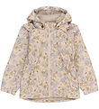 Smart Minymo softshelljakke med flot alloverprint af blomster i rosa og gyldne nuancer.