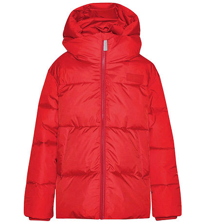 Lækker Molo dynejakke i rød med vandrette syninger samt en gummiapplikation på venstre bryst.