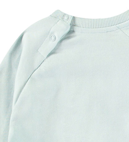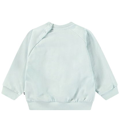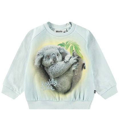 Skøn Molo sweatshirt i lyseblå med et charmerende print af en koala, der omfavner et træ. Molo sweatshirten har bløde ribkanter, og den åbnes med trykknapper bag den venstre skulder.