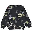 Sej Molo sweatshirt med et dynamisk motorcross-print på fronten. Molo sweatshirten har en kombination af dyb blå og hvid med ribkanter ved halsudskæringen og ærmerne, der giver et moderne udtryk.