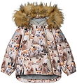 Skøn Molo vinterjakke i et lyst rosa udtryk med et smukt alloverprint af piletræets gæslinger samt nuttede kattekillinge samt med logoreflekser og reflekspipings.