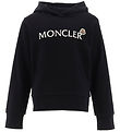 Moncler hættetrøjen har en fast hætte med et bomuldsfor, og den kan lukkes lidt til foran med to sølvfarvede trykknapper. Hættetrøjen har lange ærmer og brede ribkanter, og fortil sidder der en kængurulomme.